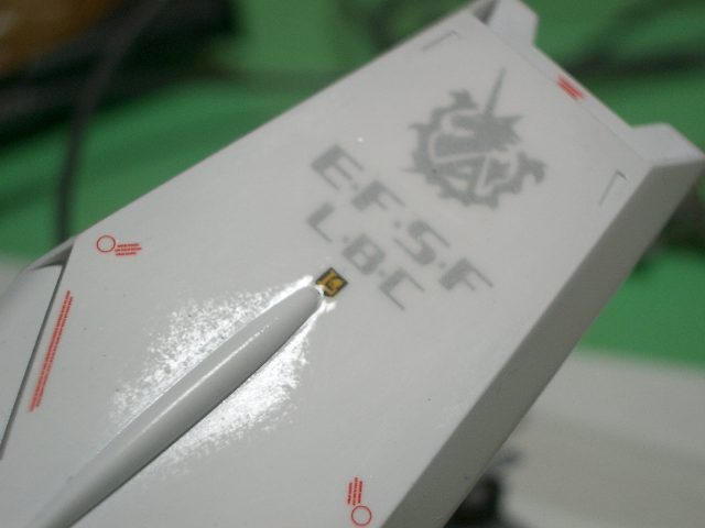 目立つ部分はデカールによる浮きとはがれ防止のために研ぎ出しをしました。
