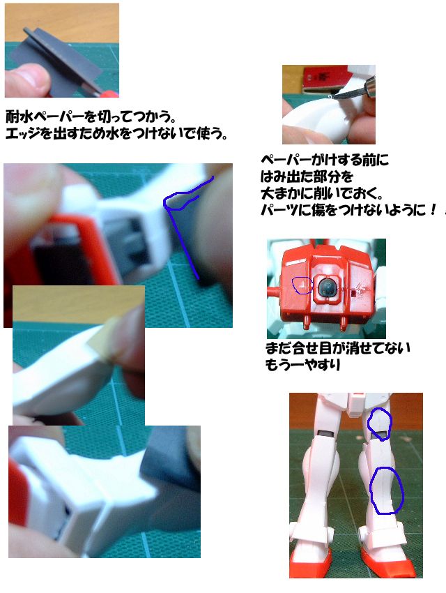 耐水ペーパーはエッジを落とすのを避けるために水を付けないで使用します。